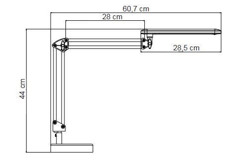 - višina 44 cm, dolžina spodnje roke 31,7 cm, dolžina zgornje roke 28 cm, dolžina svetilnega dela 28,5 cm