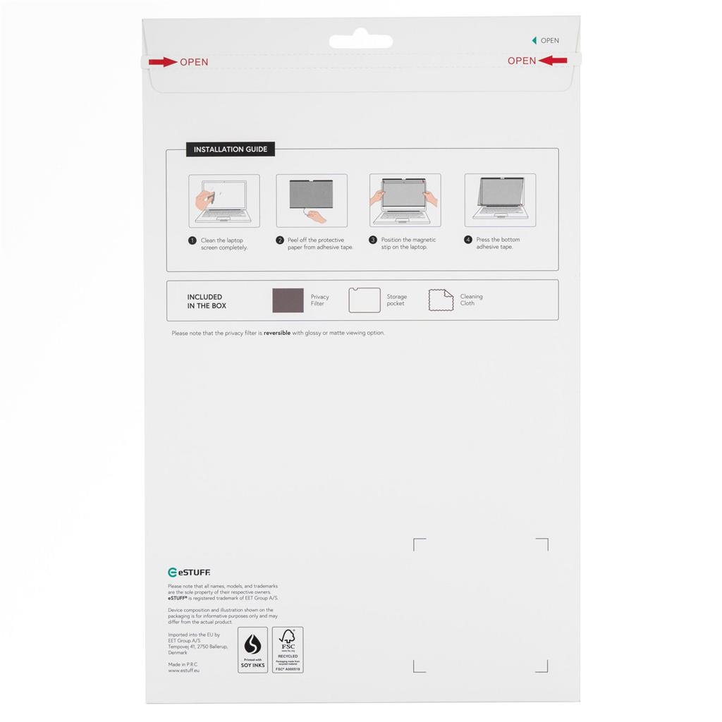 eSTUFF MacBook Privacy Filter – Popolno prileganje, brezskrbna zasebnostNarejen posebej za MacBooke, ta magnetni filter zasebnosti se brezhibno pritrdi brez potrebe po lepilih. S svojim tankim, modernim dizajnom se naravno ujema z vašim MacBookom, ponuja takojšnjo zasebnost in prefinjen videz, ki ustreza vaši napravi.