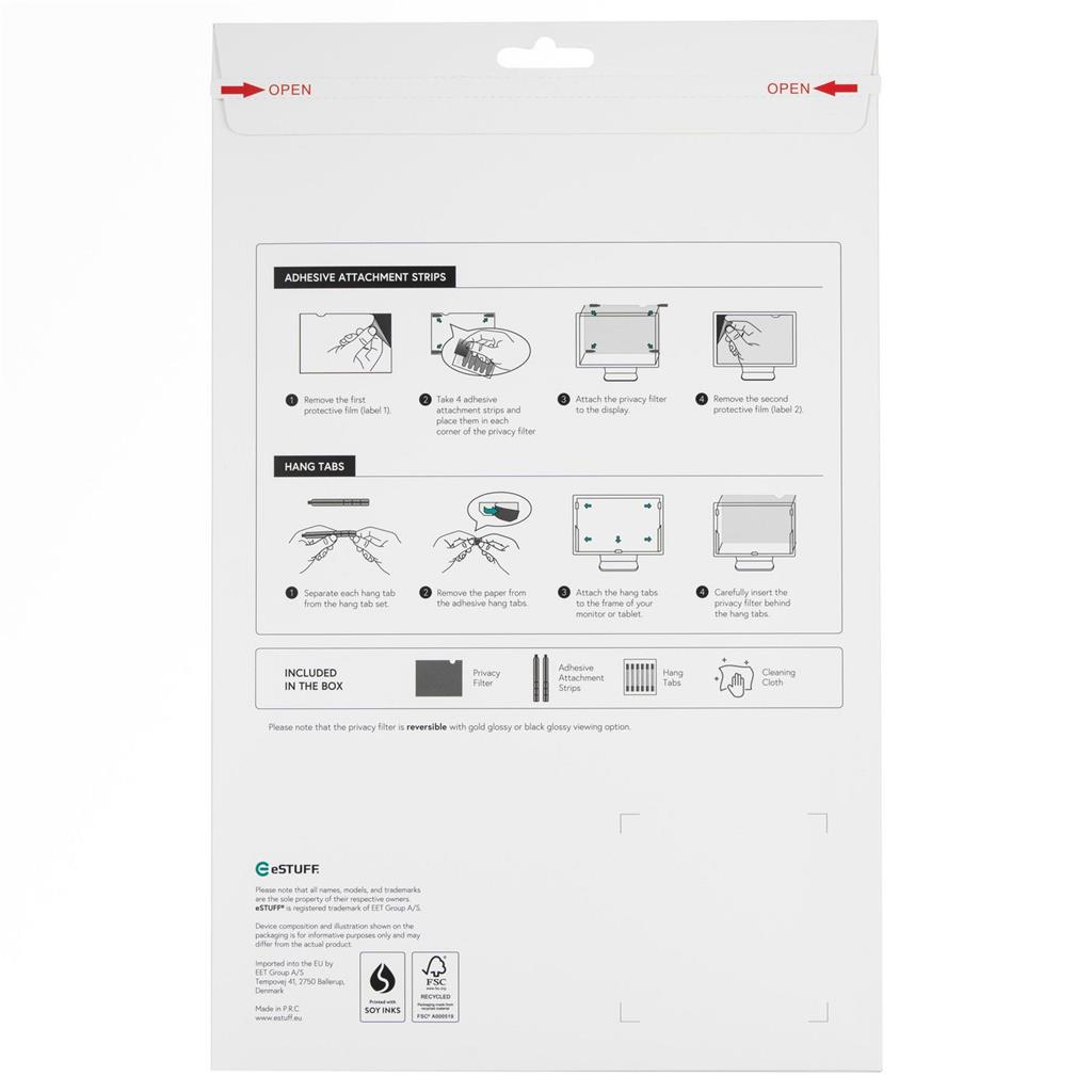 eSTUFF Zlatni filter zasebnosti – Premium zasebnost z zlatim pridihomDodajte plast razkošja svoji zaščiti zasebnosti. eSTUFF Gold Privacy Filter zagotavlja visok kontrast in visoko ločljivost jasnosti zaslona za uporabnika, hkrati pa stranski opazovalci vidijo izrazit zlat ščit. To je zasebnost s stilom – popolno za profesionalce, ki želijo izstopati in ostati varni.