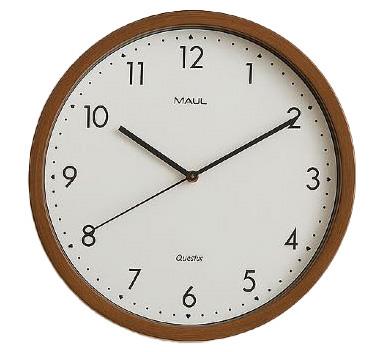 - sodobna kvarčna stenska ura s plastičnim okvirjem v toplem, naravnem lesenem videzu