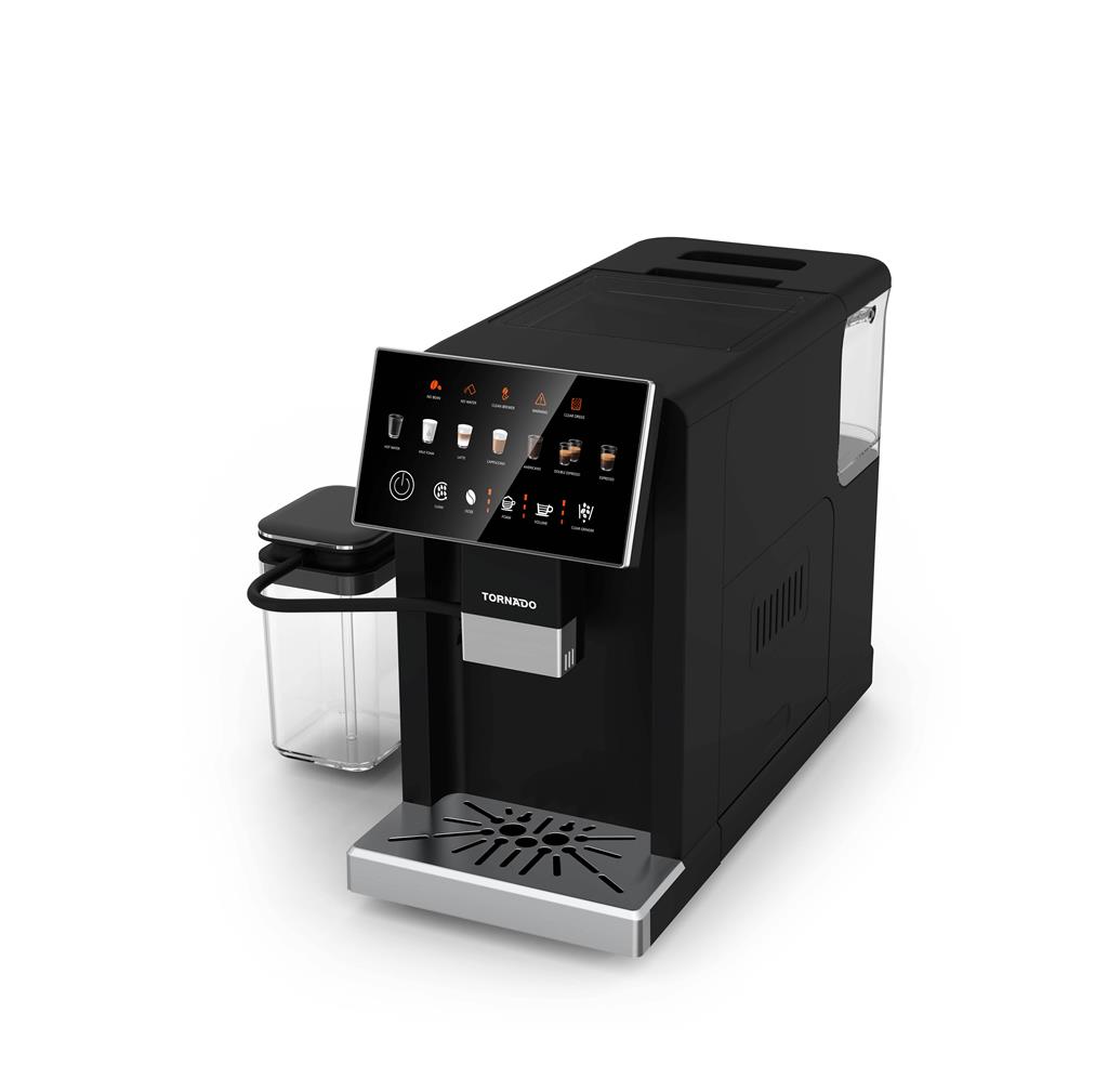 Izboljšajte svojo dnevno rutino s kavo s Tornado TCMA-1001-GS, zmogljivim popolnoma avtomatskim kavnim aparatom, zasnovanim za udobje in vrhunski okus. Z 20-bar tlačno črpalko in dvojnimi grelniki zagotavlja hitro in enakomerno kuhanje espressa.