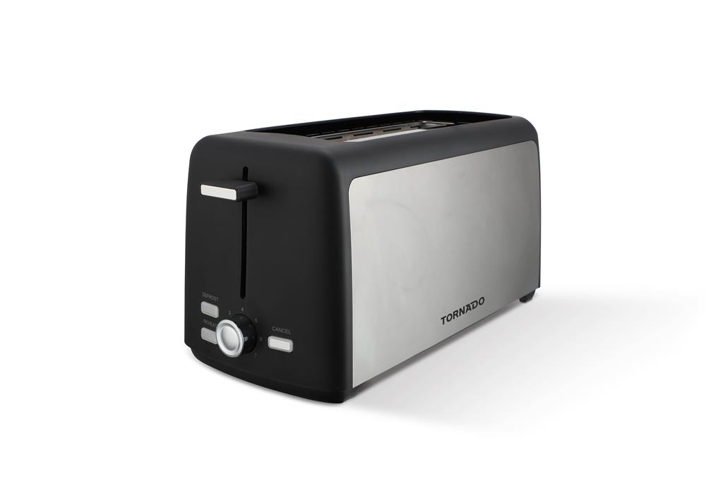 Opekač kruha Tornado TTA7402-GS z dolgo režo je kompakten, a hkrati zelo zmogljiv, saj zagotavlja 1400 W hitrega in enakomernega segrevanja za vašo vsakodnevno zajtrkovalno rutino. Njegov podaljšani format 4 × 100 mm sprejme dve dolgi rezini kruha ali več manjših rezin eno ob drugi – idealno za toaste, hlebčke ali posebne XXL toaste.