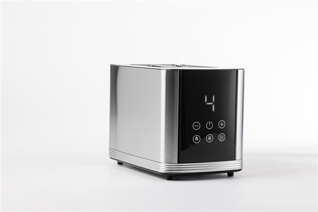Tornado TTA751-GS je digitalni opekač kruha za 2 rezini, ki združuje prefinjeno estetiko in sodobno funkcionalnost ter je zasnovan za natančnost in vsakodnevno udobje. Z ohišjem iz brušenega nerjavečega jekla in elegantnim LED zaslonom prinaša vrhunski videz na vaš pult, hkrati pa ponuja enostavno upravljanje na dotik.